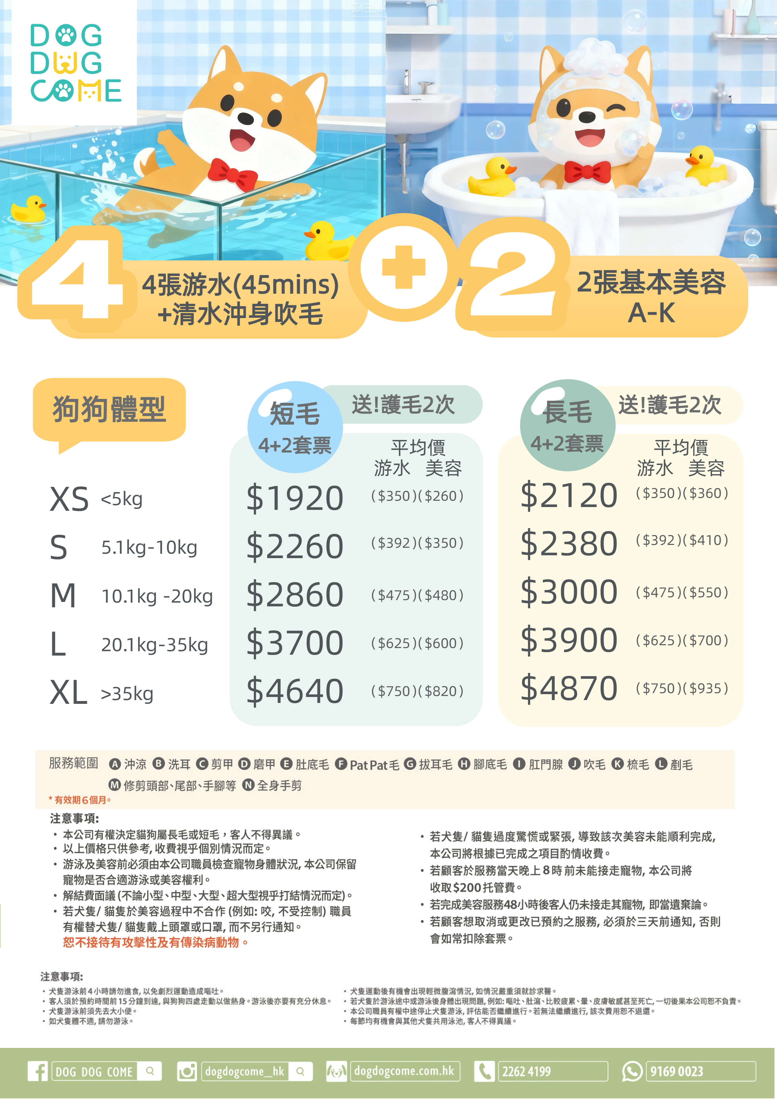 寵物美容及游泳套票收費