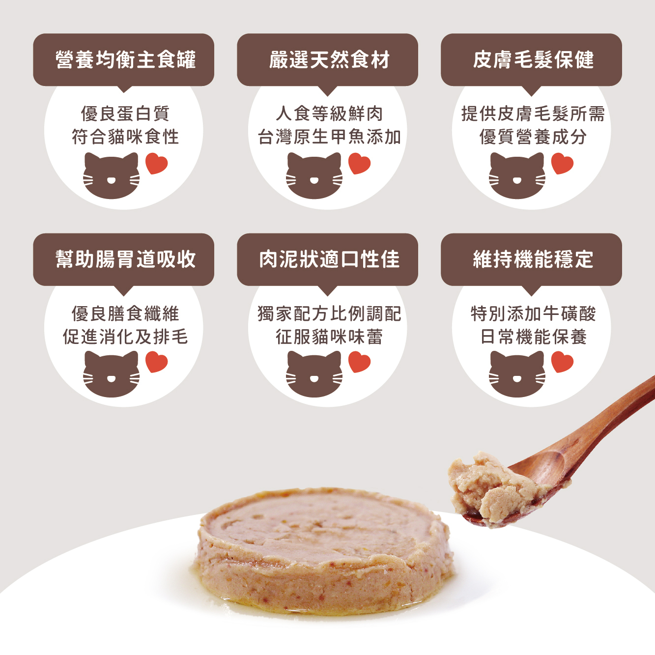 ✔ 肉泥罐內含些許湯汁,也可另外加水適當補充貓咪水分