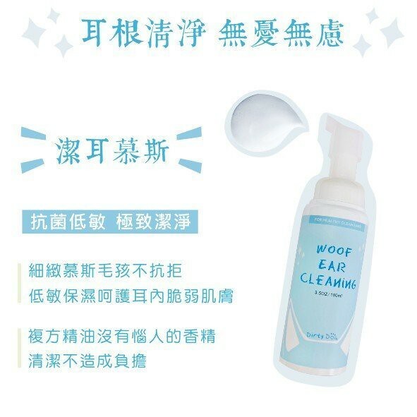 ‧ 低敏細緻的潔耳慕斯搭配純露與精油複方,能有效分解清除耳朵內的
